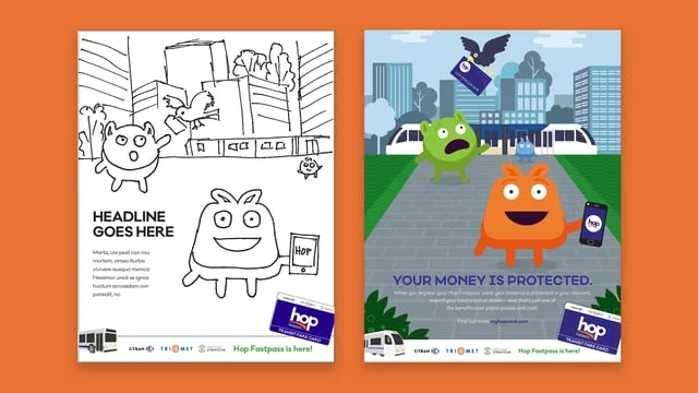 VIDEO : This is a reel I put together that showcased the large amount of TriMet work that came from our office. This was the Hop Fast Pass campaign which wanted to engage the user with a friendly approach.